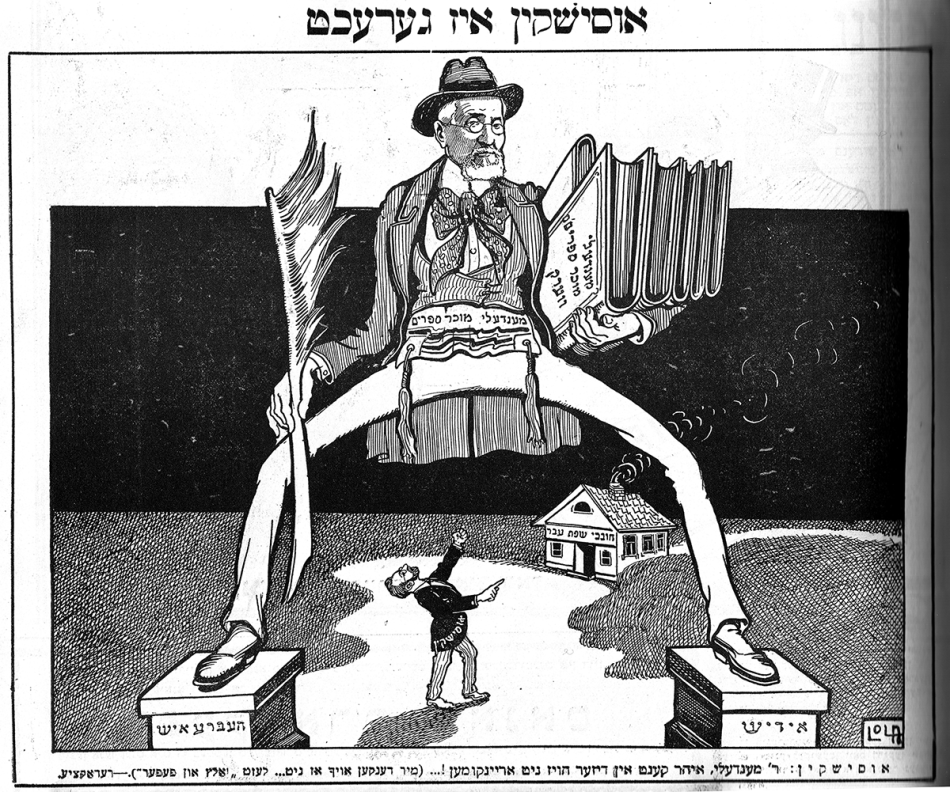 Yiddish literature suffered an inestimable loss when these three “classic” authors of Yiddish literature died one year after another, in 1915, 1916, and 1917. While there are fewer cartoons of these classic writers than those writers who followed in their footsteps, those that do exist are testament to their status among readers and writers.