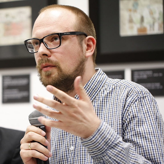 Marek Tuszewicki is a Deputy Director of the Institute of Jewish Studies, Jagiellonian University in Kraków. Much of his research and teaching focuses on the language and culture of Ashkenaz, particularly in their relation towards modernity. In 2014, he received a Ph.D. in History from the Jagiellonian University and a year later published the book: A Frog Under the Tongue: Jewish Folk Medicine in Eastern Europe (in Polish, later in English). He has also authored numerous articles devoted to Ashkenazi popular and medical culture, translations of Yiddish literature into Polish (including Mendele, Peretz, and Sutzkever) as well as his own book of Yiddish poetry Fun beyde zaytn shpigl.
