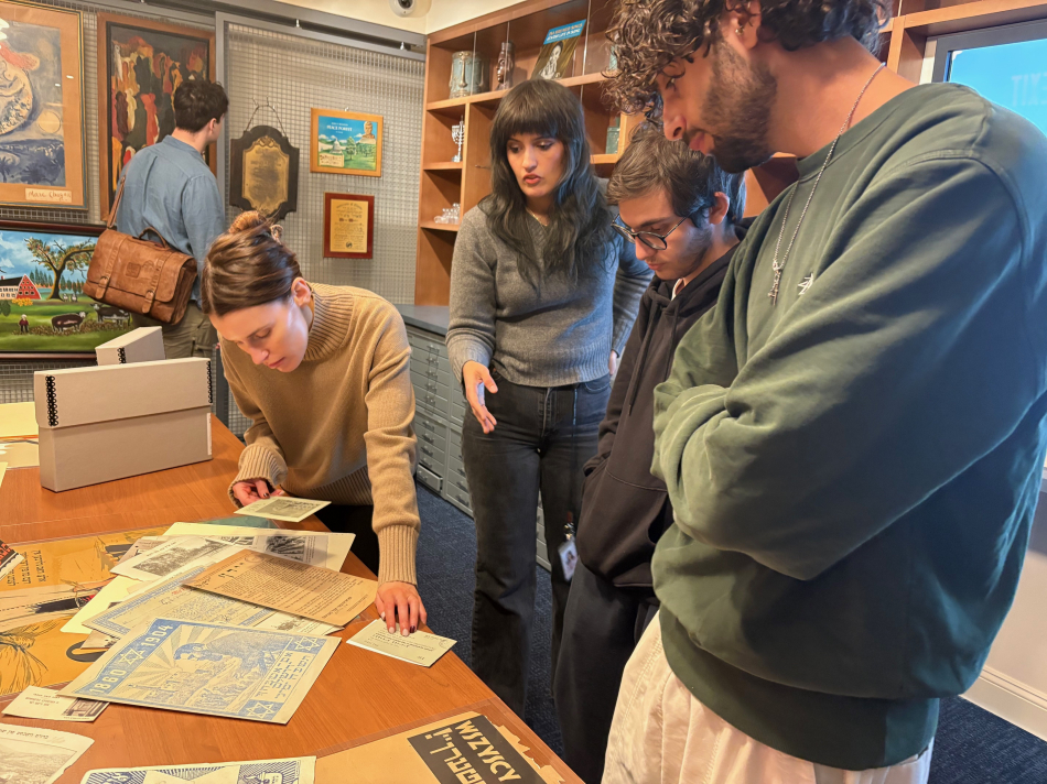 Since the YIVO Learning and Media Center’s (YLMC) June opening, we have had a whirlwind of visits from high schools, colleges, universities, and other institutions. In the latter half of 2025 alone, we hosted 19 group visits totaling 300 visitors, including Kushner Yeshiva students for a special introduction to YIVO, with a talk by Eddy Portnoy on archival research for his book Bad Rabbi. Other visits brought Jewish Theological Seminary students from a class on Yiddish theater for a show-and-tell focused entirely on Yiddish theater; The New School students from a course on Jewish ethnography for a tour of YIVO's archival stacks; and Columbia University students from class on Zionist thought and ideology for a lesson exploring reproductions of archival materials pertaining to Zionist youth groups in Eastern Europe.